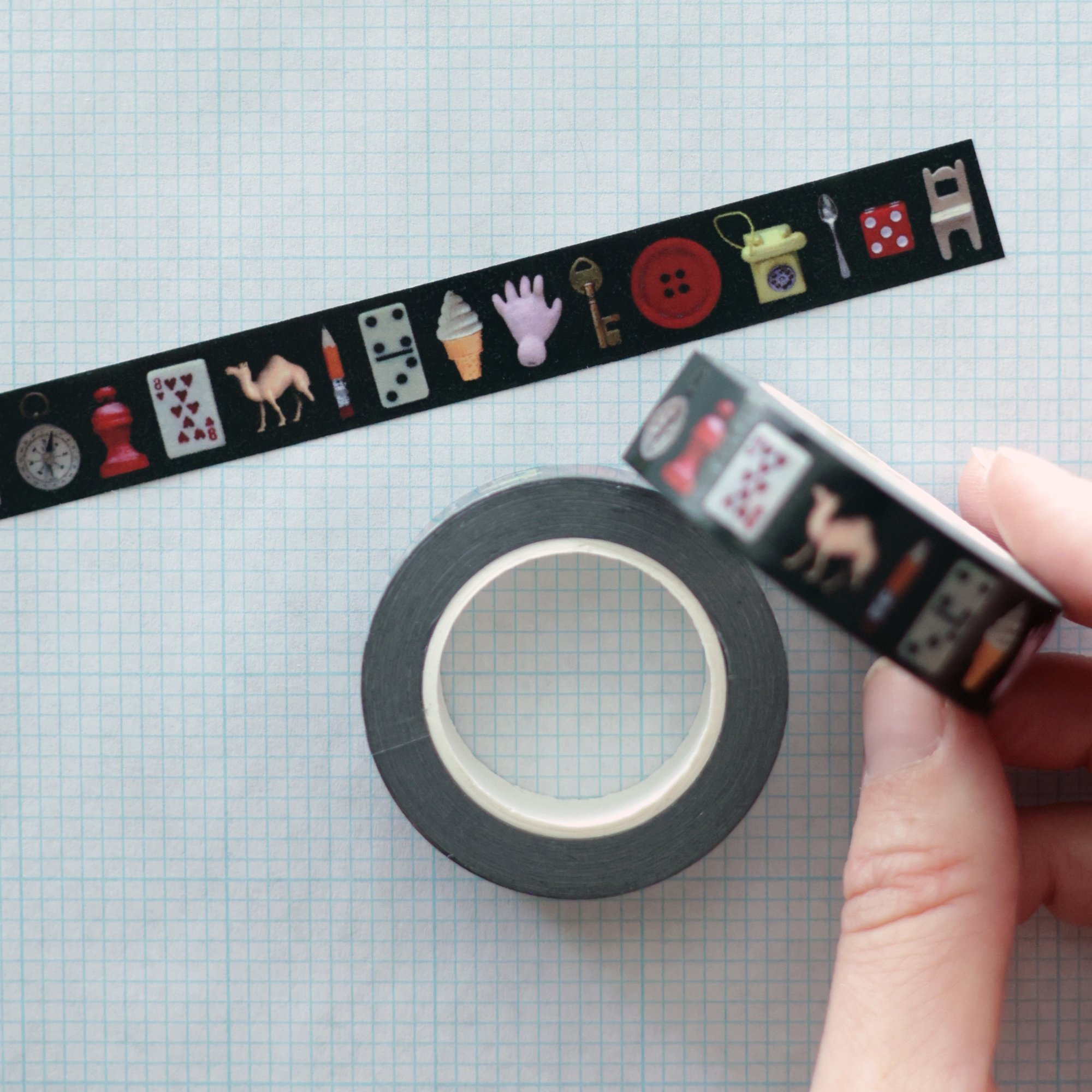 Printed with some of our favorite treasures from the museum, all lined up neatly in a row, this eco-friendly, fade resistant, durable washi tape is 0.6 inches wide and includes 32 feet per roll. (Pattern repeats approximately every 5 inches)