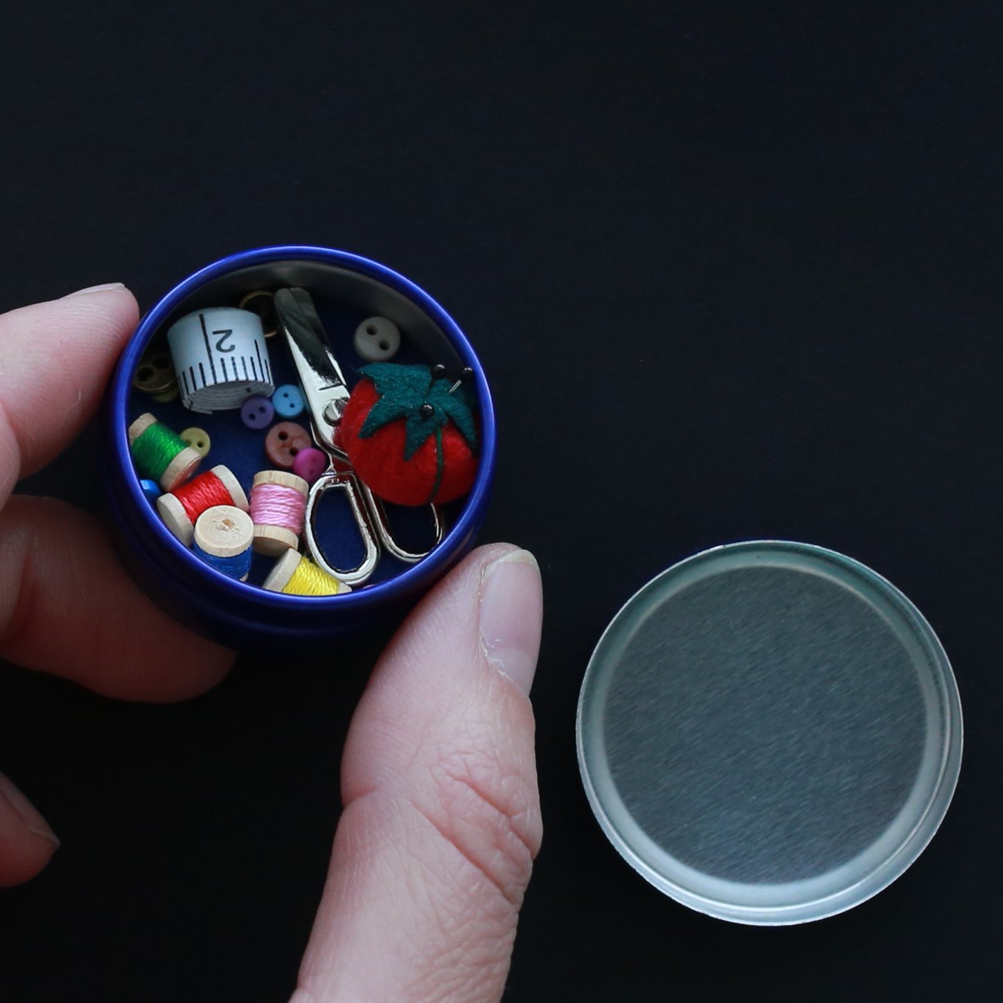 Each sewing tin is put together by hand. Yours may vary slightly from the image above.